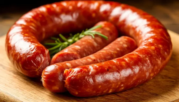 - Подача: Нарежьте колбасу кружочками и подавайте как самостоятельную закуску или с гарниром.