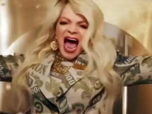 В видеоролике, появившемся в сети с надписью «Тест цвета без бьюти клинапа», певица несколько раз срывается на крик, истерично повторяя строку «За деньги да» под аккомпанемент духового оркестра.