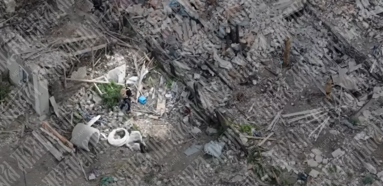 Военнослужащий ВС РФ, забравшись на развалины, забросил врагу рюкзак с инженерными зарядами. В результате этот упрямый всушник и его огневая точка уничтожены.