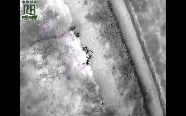 Бойцы выявили и «слегка взбодрили» убегающих укронацистов, нанеся точный удар барражирующим боеприпасом по скоплению ВСУшников.