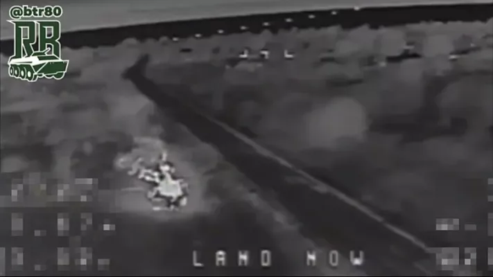 FPV-дрон спецназа влетел во вражескую технику, в результате чего она загорелась, боевики повыпрыгивали наружу. Вторым дроном проконтролировали уничтожение бронемашины.