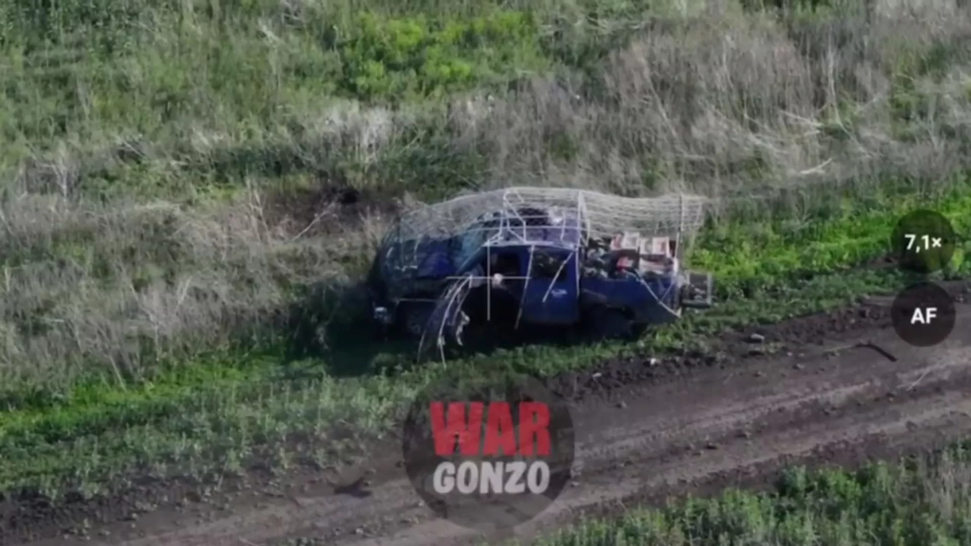 Как можно увидеть, метким попаданием камикадзе автомобиль был обездвижен, а затем предусмотрительно сожжен, чтобы не оставить ВСУ шансы собрать своё дорогостоящее оборудование.