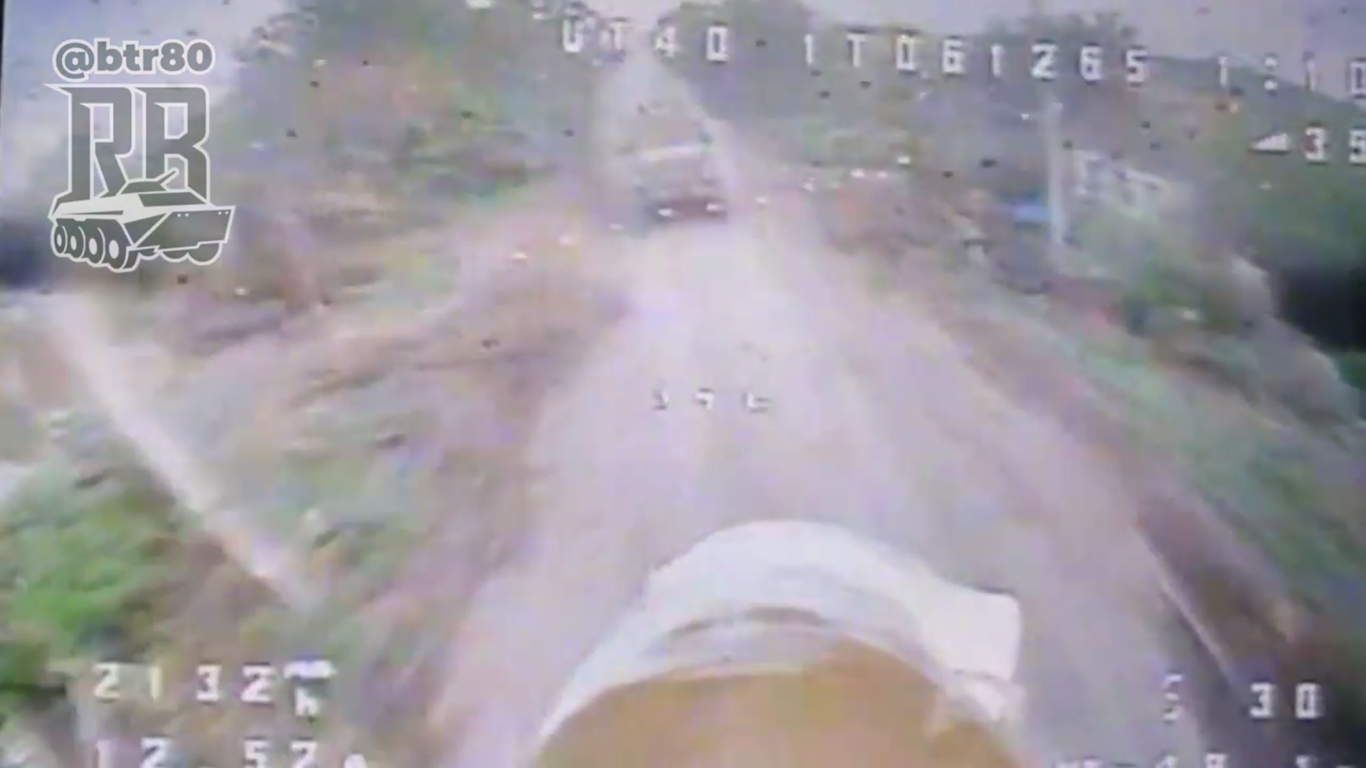FPV-дрон лоб в лоб влетел во вражеский БТР, обездвижив его. Второй беспилотник добил технику украинских боевиков. Горящая машина попала в объектив квадрокоптера, проводившего воздушную разведку.