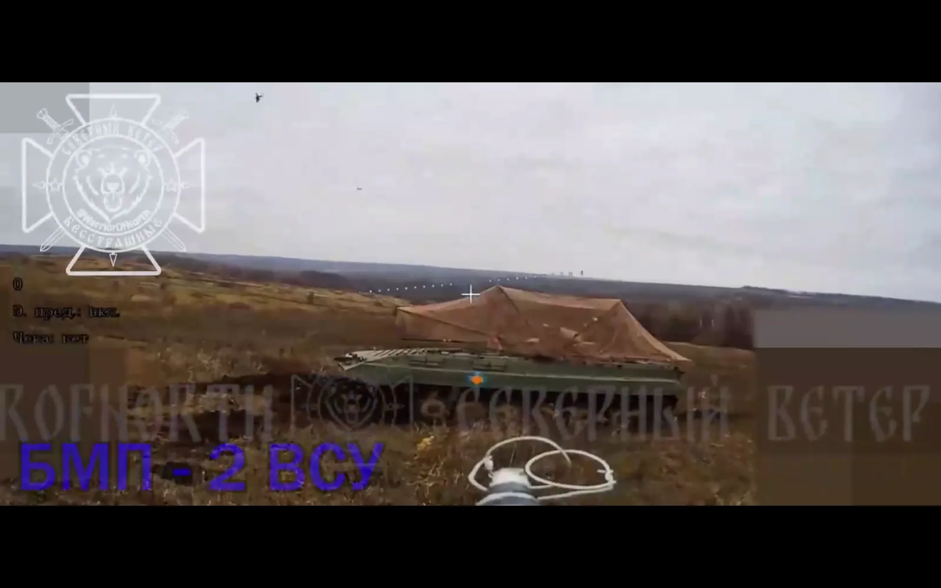 Хатненский участок фронта. Несколькими ударами FPV уничтожена вражеская БМП-2, которая участвовала в контратаке на позиции Северян. Отработали расчеты БпЛА 83 полка.