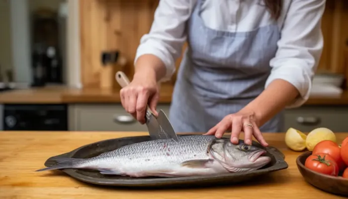Первый способ — использование кипятка. Этот метод отлично подходит для большинства видов речной и морской рыбы, особенно если чешуя не слишком мелкая и плотная