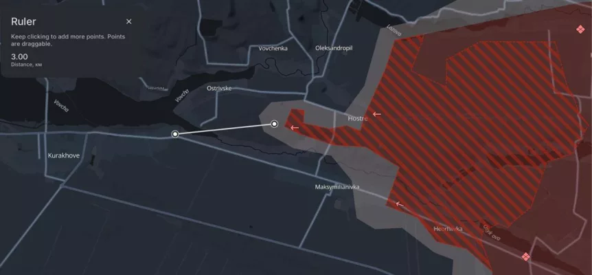 - На Покровском и Южнодонецком направлениях ВС России сохраняют наступательный потенциал, подтягивают тылы и выравнивают фланги. Взят Украинск, наши войска ведут бои в пригородах Горняка, появилась информация о взятии Острого, что указывает на идущее закрытие котла севернее Красногоровки. Расширяется зона контроля севернее и западнее Угледара, не может не радовать видимое развитие тактики Армии России по отсечению укрепрайонов ВСУ от снабжения и умелому охвату вражеских узлов обороны.