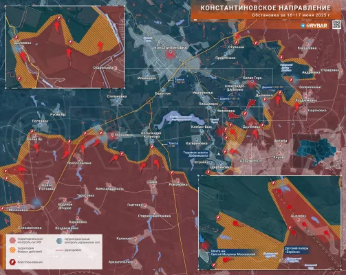 - На правом фланге Константиновского направления (https://t.me/rybar/71413) наши войска наступают с тяжёлыми боями севернее н.п. Дачное.