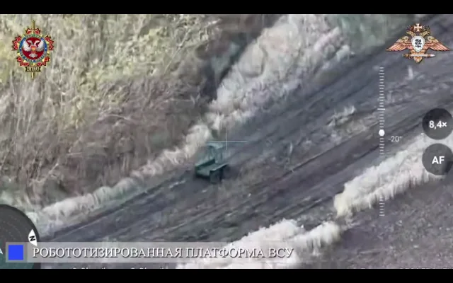На Константиновском направлении FPV-дроны отдельного отряда специального назначения «Охотник» 51 гвардейской общевойсковой армии накрыли наземные роботизированные транспортные комплексы ВСУ, перевозившие боеприпасы, что сорвало логистику и обеспечение подразделений украинских националистов.