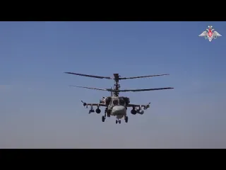 Экипажи армейской авиации на вертолетах Ка-52м нанесли удар авиационными средствами поражения по живой силе и бронированной военной технике подразделений ВСУ в приграничном районе Курской области.