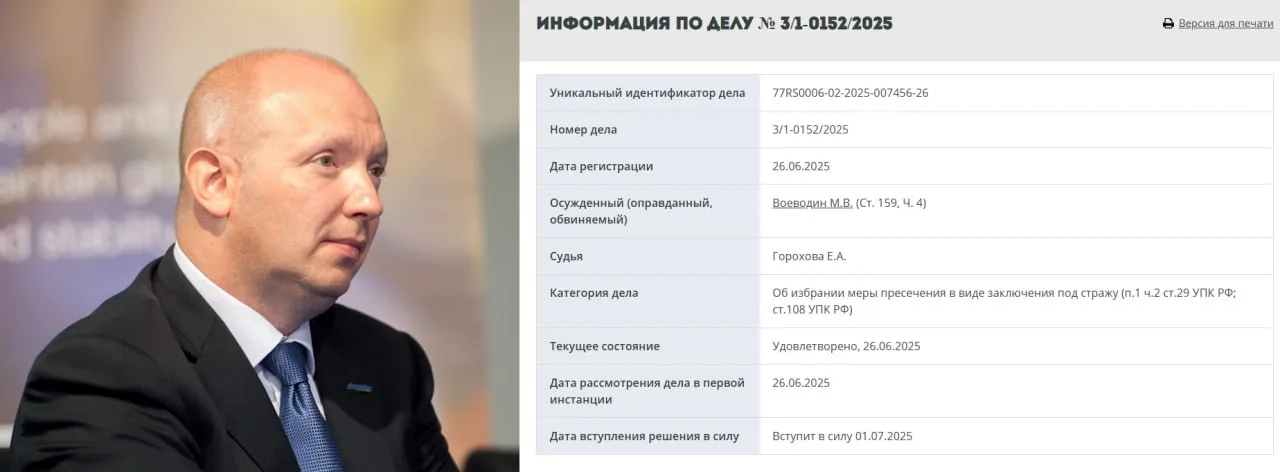 - Он и гендиректор «Вторпромресурсов» Евгений Лысенко были задержаны 25 июня, дело заведено 23 июня. Дорогомиловский суд Москвы отправил обоих под стражу.