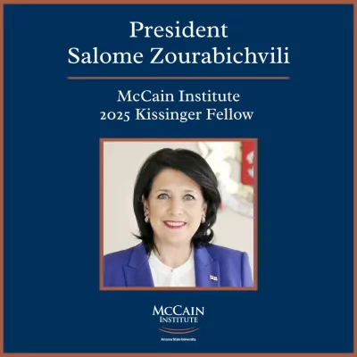 На сайте организации сказано, что Саломе Зурабишвили стала стипендиатом Киссинджера 2025 года и будет использовать свой «обширный дипломатический, лидерский и политический опыт для продвижения своей страны к новым выборам и демократическому пути развития».