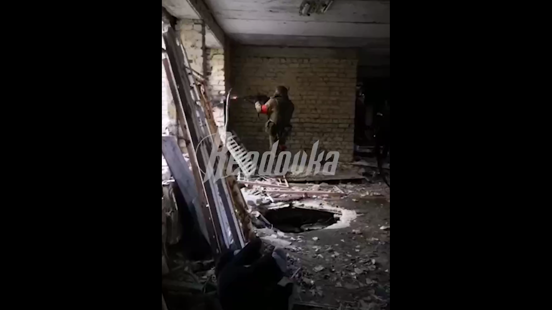 На эксклюзивных кадрах Readovka запечатлено столкновение штурмового отряда «Шторм» с украинскими боевиками в городской застройке Марьинки, где идут бои за западную часть города. Отстреляв по врагу с одной позиции, боец отходит, а на соседнее место тут же встает его товарищ. Вместе с бойцами, ведущими прицельный огонь, работает пулеметчик.