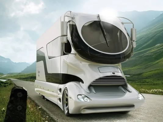 Технические решения впечатляют: аэродинамика снижает расход топлива на 20%, а двигатель мощностью 500 л.с. разгоняет 20-тонную махину до 150 км/ч. Несмотря на длину в 12 метров, управление интуитивно простое. Производитель предлагает три версии: для путешествий, как VIP-шаттл или выставочный павильон, каждая — с роскошной отделкой и выдвижным модулем.