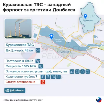 🟦 Близится освобождение Курахово и Кураховской ТЭС. После овладения ими, российской армии останется освободить Славянскую ТЭС и вся энергосистема Донбасса снова станет единой.