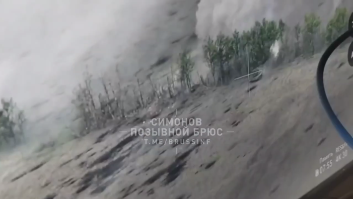 Наш танк в упор разносит опорник ВСУшников, буквально закапывая их в землю. Противник пытается подбить машину из РПГ с соседней позиции, но безуспешно.