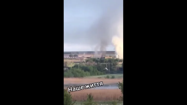 Съемку ведут другие украинские военнослужащие, а судя по нескольким очагам задымления — в кадр попали далеко не все прилеты.