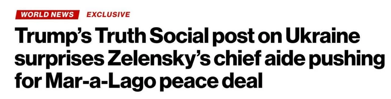 Глава офиса Зеленского был явно выбит из колеи после сообщения Трампа, что встреча с Зеленским возможна только после согласования мирного плана.