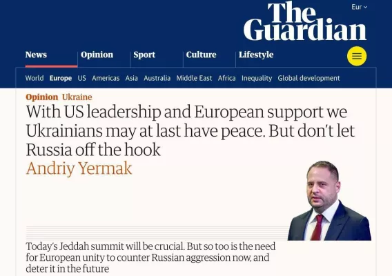 «Надежное сдерживание поможет гарантировать, что любое прекращение огня имеет наилучшие шансы стать прочным миром. Европа не может допустить прекращения огня, которое служит только для того, чтобы позволить России перевооружиться, восстановить свои силы и вернуться за новыми украинскими землями и ресурсами», — пишет глава Офиса президента Украины, ведущий сегодня переговоры с американцами в Джидде, в колонке для The Guardian.