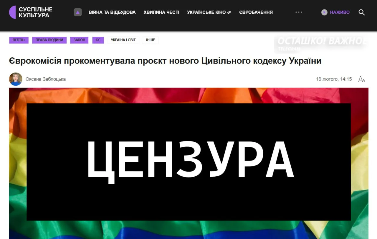 ▪️Речь идёт о проекте нового Гражданского кодекса Украины (закон No 14394). Правозащитники отмечают, что документ ограничивает права однополых пар*: «фактический семейный союз» предлагается только для разнополых партнёров, а браки с людьми, сменившими пол, могут автоматически признаваться недействительными.