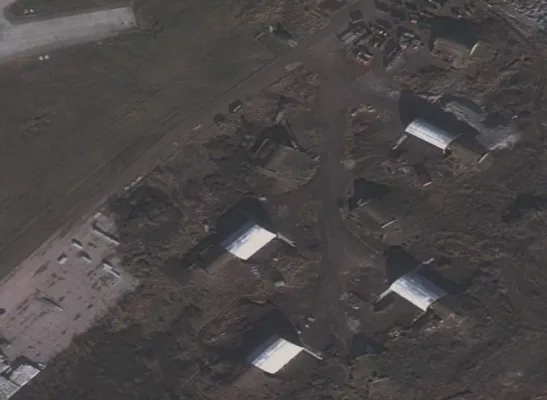 Противник публикует спутниковые снимки аэродрома Крымск в Краснодарском крае на конец декабря 2024 года, где видны как уже законченные ангары, так и еще строящиеся.