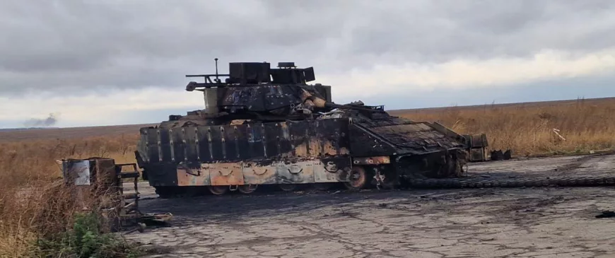 Теперь уже обыденность, но всё равно приятно. Ещё одна уничтоженная в Суджанском районе Курской области украинская БМП M2A2 ODS-SA «Bradley» BRAT с мангалом.