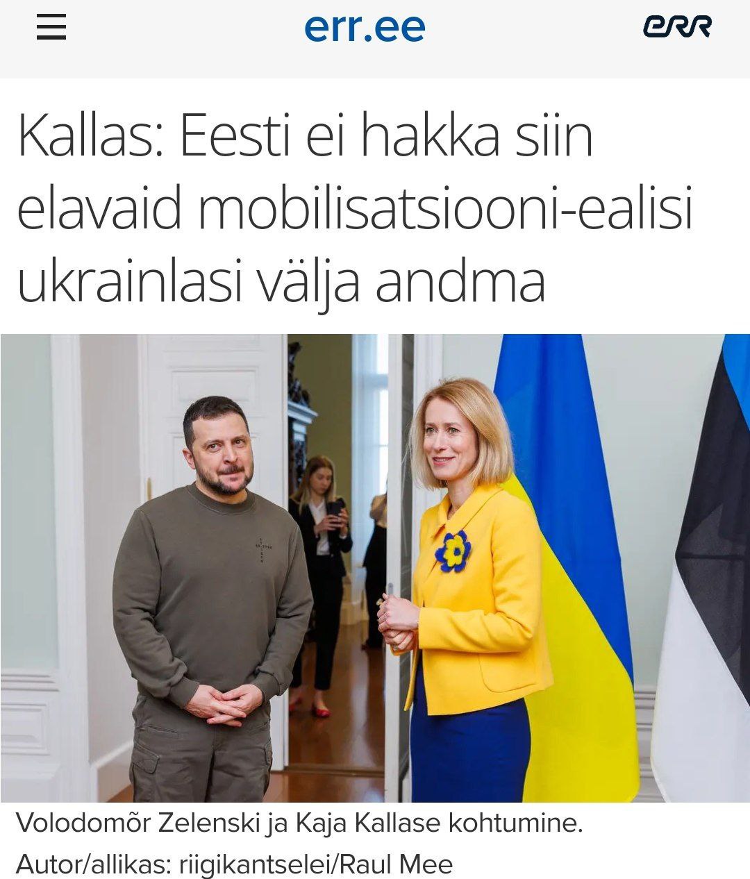 Таллин отказал в экстрадиции украинских беженцев призывного возраста, которые проживают на территории республики. Об этом после переговоров с Зеленским заявила премьер-министр страны Кая Каллас.