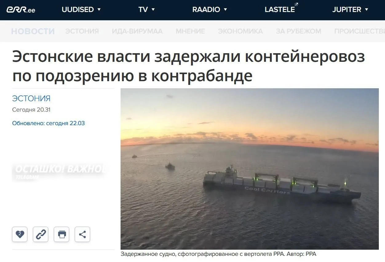 Выяснилось, что судно не входит в «теневой флот» России и не находится под санкциями ЕС. Глава пограничной охраны Эстонии заявил, что работа по проверке контейнеров продолжится.