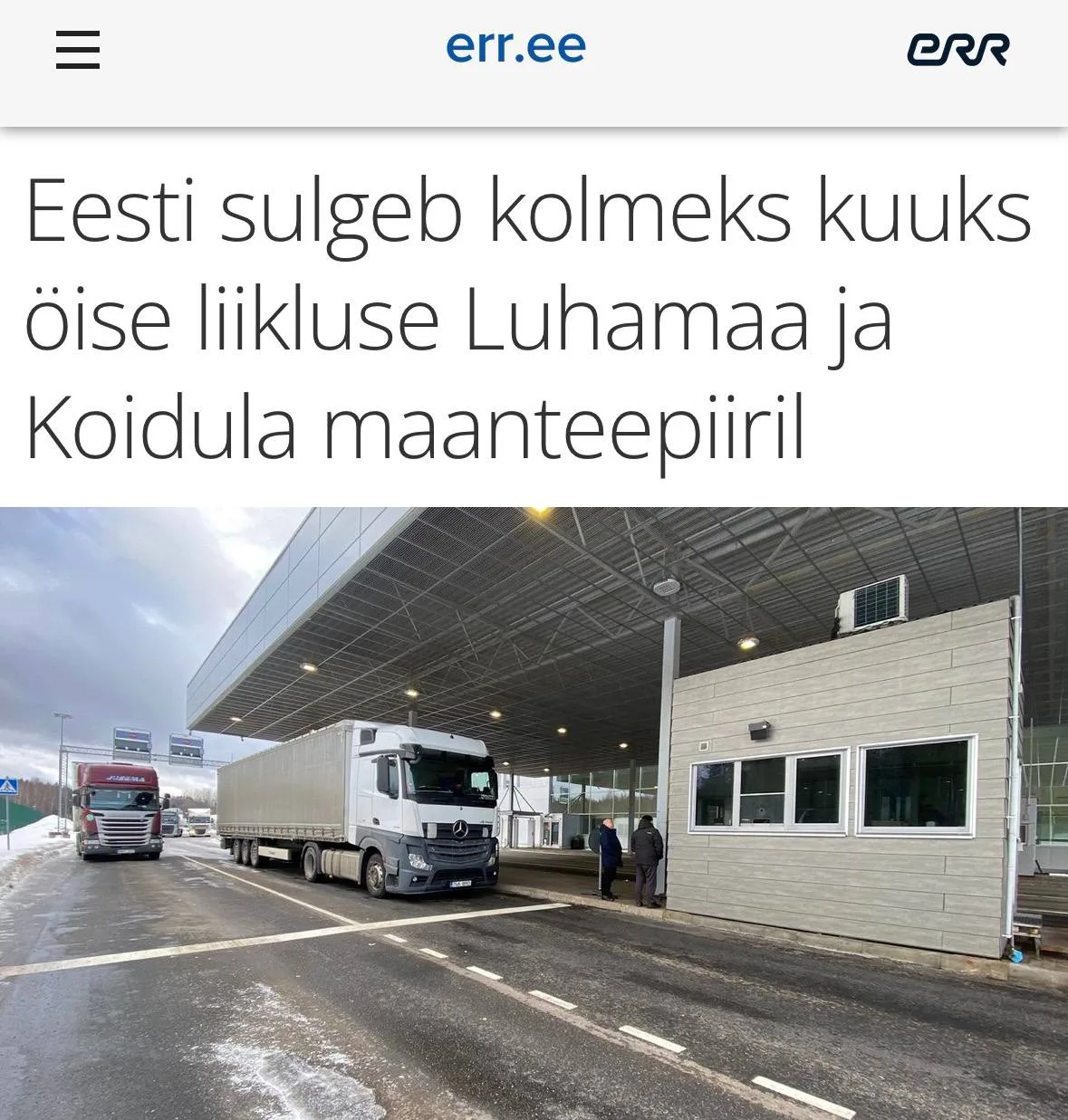 С 24 февраля на три месяца правительство Эстонии приостанавливает ночную работу последних круглосуточных автомобильных пунктов пропуска — Лухамаа и Койдула.