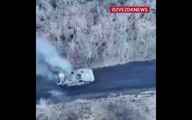 Подкрасться она решила с лесополосы в Харьковской области. Дроноводы быстро зафиксировали пехотную машину всушников и пустили в дело FPV. «Птичка» подорвала БМП — теперь на ее месте пламя и клубы дыма.