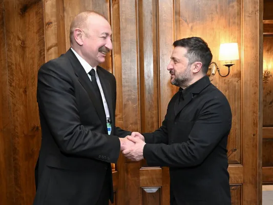 14 февраля в Мюнхене Алиев встретился с президентом Украины Владимиром Зеленским. Украинский лидер отметил, что проинформировал азербайджанского коллегу о последствиях российских атак на объекты энергетической инфраструктуры и поблагодарил Баку за поддержку, включая генераторы и трансформаторы.