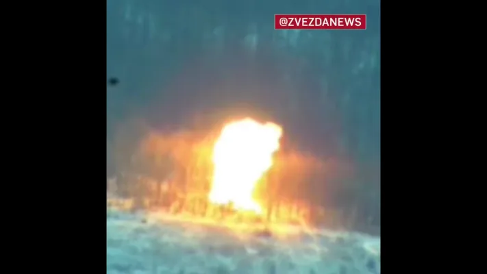 Вражеский танк обнаружили в районе Нечволодовки Купянского района Харьковской области. Несколько точных попаданий FPV-дронов сожгли вражескую технику — на кадрах видна детонация боекомплекта.