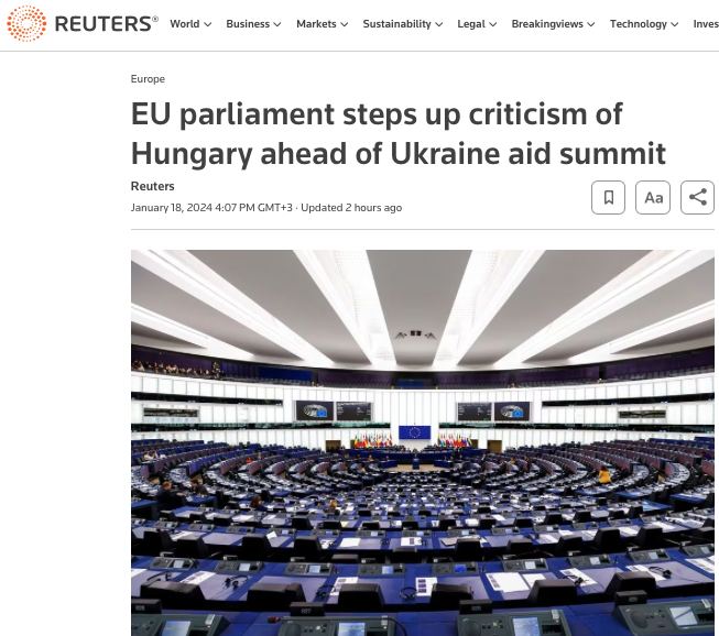 Законодатели проголосовали 345 «за» и 104 «против» по резолюции, осуждающей «преднамеренные, постоянные и систематические усилия венгерского правительства по подрыву основополагающих ценностей ЕС».