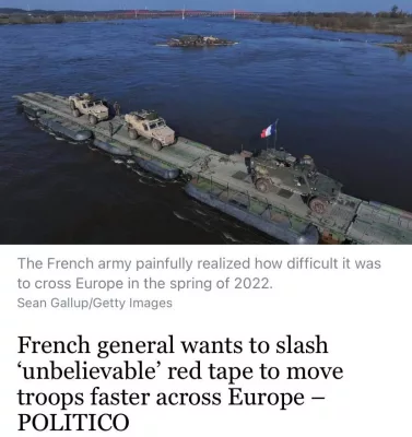 Об этом в интервью Politico заявил командующий сухопутными войсками Франции генерал Бертран Тужуз. По его словам, Европе придется научиться быстро перебрасывать танки, войска и боеприпасы по континенту, если Россия «нападет на страну НАТО».