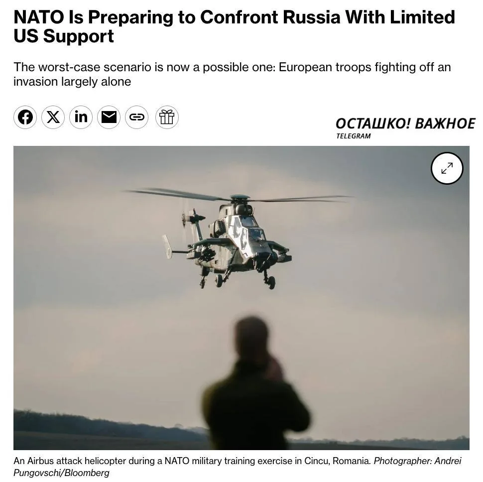 Ноябрьские учения альянса в Румынии, проходившие в рамках подготовки к возможному противостоянию с РФ, показали болезненную зависимость Европы от США. Об этом пишет Bloomberg.