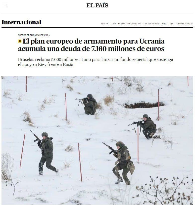 С начала украинского конфликта Евросоюз одобрил выделение €3,5 млрд на вооружение Киева и еще €2 млрд — на программы по его снабжению боеприпасами. При этом долг ЕС перед странами-партнерами за военную помощь достиг €7,16 млрд, пишет El País.