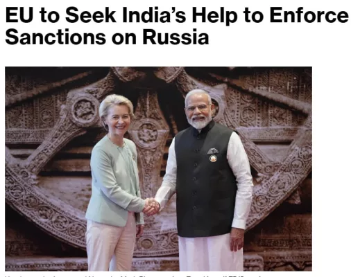 Глава Еврокомиссии Урсула фон дер Ляйен во время визита 27-28 февраля будет уговаривать премьера Моди поддержать ужесточение санкций против РФ, сообщает Bloomberg со ссылкой на европейские источники.