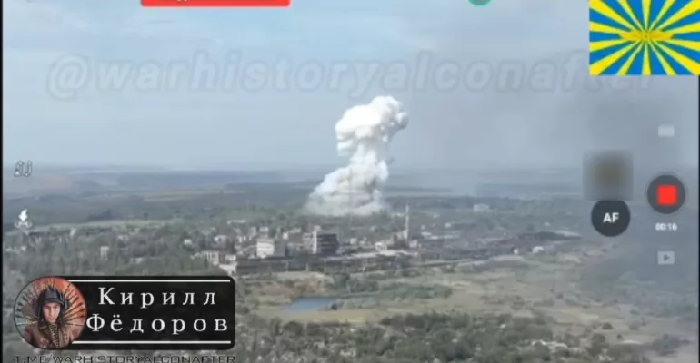На видео прилёт ещё одной русской авиабомбы в район сосредоточения техники хохлов, которое было выявлено десантниками-разведчиками.