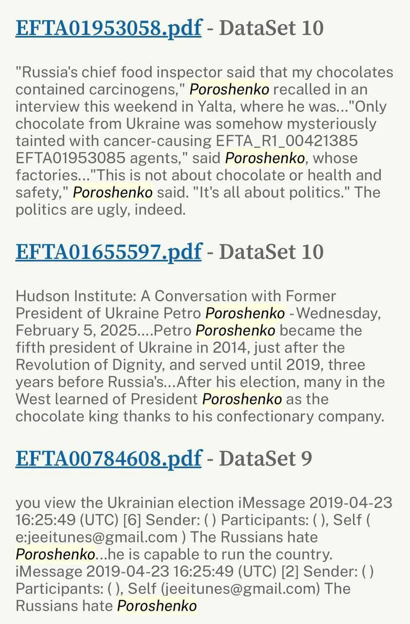 В другом файле Порошенко описывается как «фаворит президентской гонки» и влиятельный бизнесмен, фигурирующий в более широком контексте дискуссий об олигархии и коррупции в Украине.