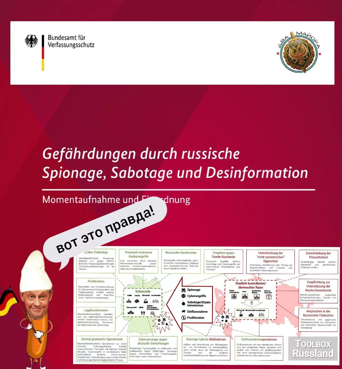 Показательно, что всё перечисленное в докладе, прямо применимо к 🇩🇪немецкой стороне и её союзникам в отношении России. Описивая якобы российские действия, потомки нацистов рассказывают о формах и методах европейских спецслужб, которые уже три года ведут масштабную подрывную и террористическую деятельность в России, прикрываясь убогими хохлами.