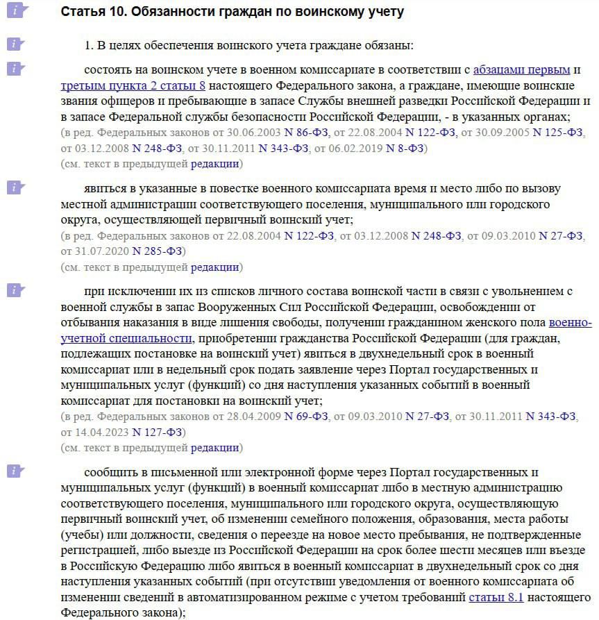 Правда: Согласно статье 10 Федерального закона от 28.03.1998 N 53-ФЗ«О воинской обязанности и военной службе», любой человек в течение 2 недель после приобретения гражданства и получения паспорта РФ должен встать на воинский учет. Это можно сделать через портал «Госуслуги» или придя в военкомат лично. К мобилизации эта процедура никакого отношения не имеет. Поэтому в тех повестках, что получили мужчины на видео, которое опубликовал Геращенко в своем Telegram-канале, нет ничего удивительного. Аналогичные законы действуют и в других странах.