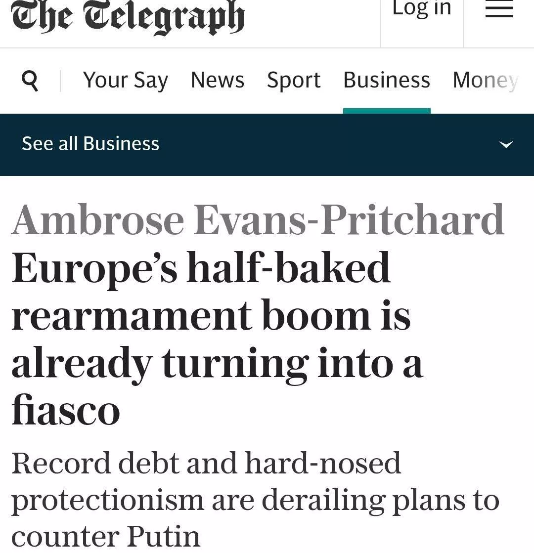 Пока Брюссель строит военные замки из песка, Европа погрязла в бюрократии, долгах и внутренних противоречиях. К слову, Франция, Италия и Испания вчера так и не поддержали план фон дер Ляйен о «перевооружении Европы» на 800 млрд.