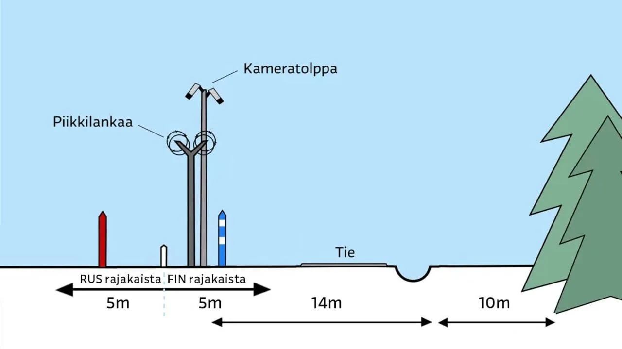 В Лапландии завершается строительство 8 км забора из планируемых 200 км, которые будут оборудоваться на разных участках границы (из 1,3 тыс. км общей протяжённости). Забор имеет высоту 4,5 м (3,5 м сетки + 1 м колючей проволоки), а также противоподкопную часть. Он также оборудован воротами для обслуживания каждые 500 м и проходами для животных каждые 3 км (могут быть закрыты при необходимости). Рядом с забором проложены дороги для передвижения пограничных нарядов.