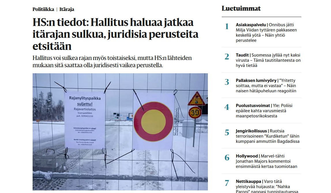 Нынешнее решение властей Финляндии о закрытии погранпереходов будет действовать до 15 января, и власти пока не объявляли, будет ли граница открыта после этой даты. Однако газета Helsingin Sanomat пишет, что чиновники склоняются к продлению запрета.