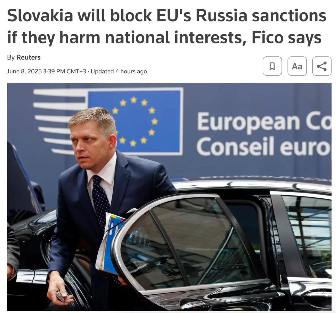 «Я заинтересован в том, чтобы быть конструктивным игроком в Европейском союзе, но не за счет Словакии», — заявил Фицо.