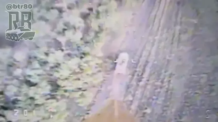 Дрон-камикадзе точно спикировал на вражескую бронетехнику, успешно ее обездвижив. Украинским боевикам пришлось бросить свою машину и возвращаться пешком.