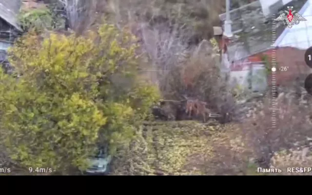 Боевики оставили свою технику под деревом, где ее обнаружил оператор БПЛА. После прямого попадания FPV-дрона машина врага загорелась.