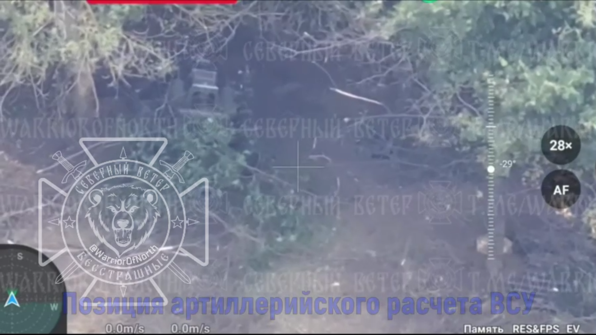 Курское приграничье. Разведкой вскрыта позиция артиллерийского расчета ВСУ, антенны связи и склад БК. После массированного налета FPV-дронов на позиции возникает пожар с детонацией БК.