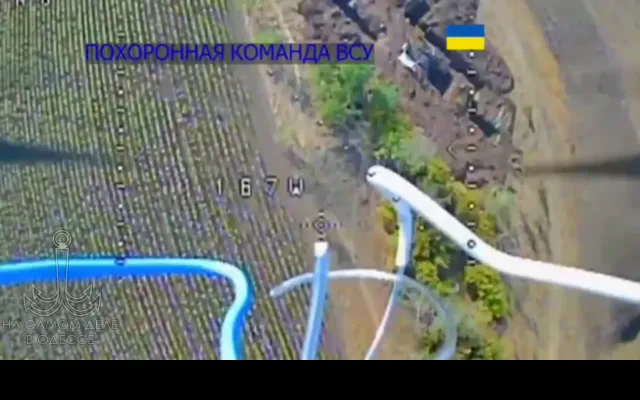 На опубликованных кадрах видно, как дрон приближается к надписи и затем резко меняет траекторию. В источниках подчёркивается, что оператор позволил украинским военным похоронить погибших.