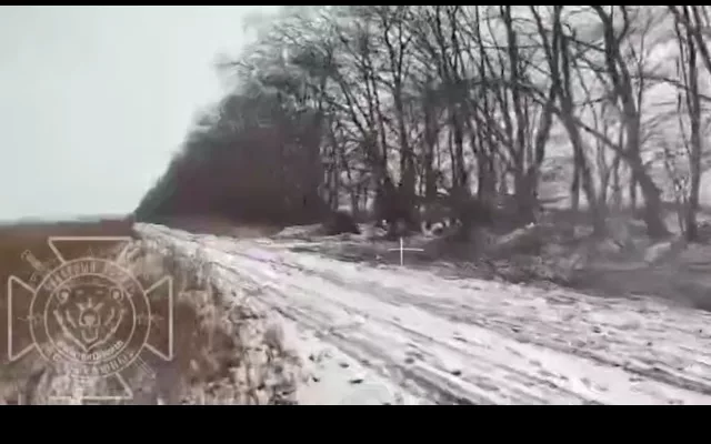 В ходе штурма опорного пункта украинских фашистов в Харьковской области оператор FPV ГВ «Север» применил по цели «птичку» на оптоволокне.
