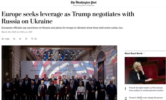 Европа не собирается просто наблюдать за переговорами США и России. Париж и Лондон планируют развернуть «силы уверенности» на Украине — от сухопутных войск до воздушных патрулей и флота в Черном море, — сообщает The Washington Post.